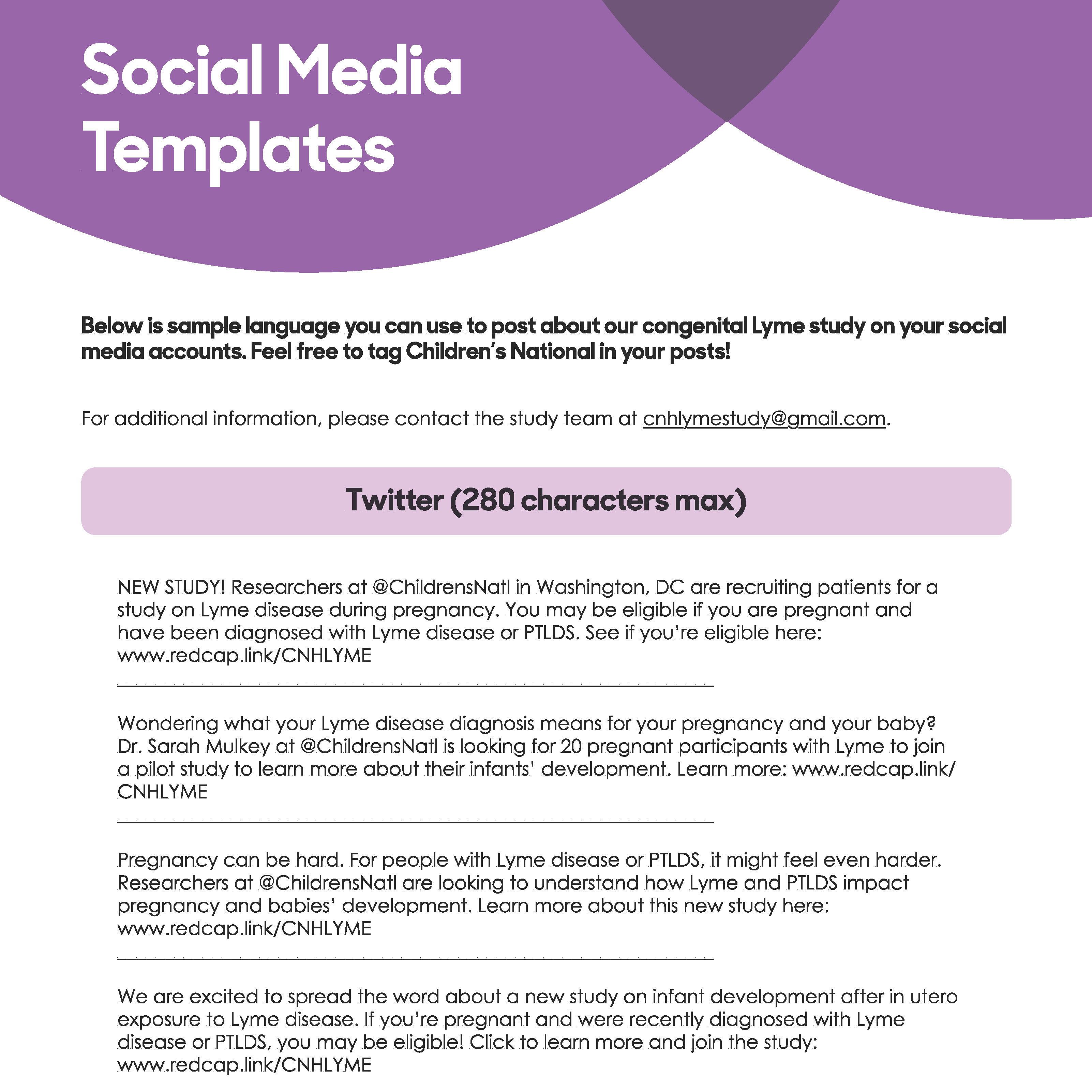 If you’re interested in posting about this pilot study on your website, blog, or social media pages, this document is for you! We would love your help spreading the word to other stakeholders and potential participants. Please use these templates we have created for you, and feel free to tag us in your posts!
